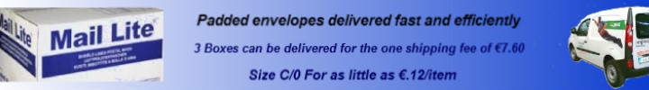The minimum order €90 for FREE shipping and can be made up from a mixture of items from the store, no other discount can be applied with this offer, there are a few exceptions such as Bulky items like Bubble wrap and corrugated cardboard rolls and Eco Void filling